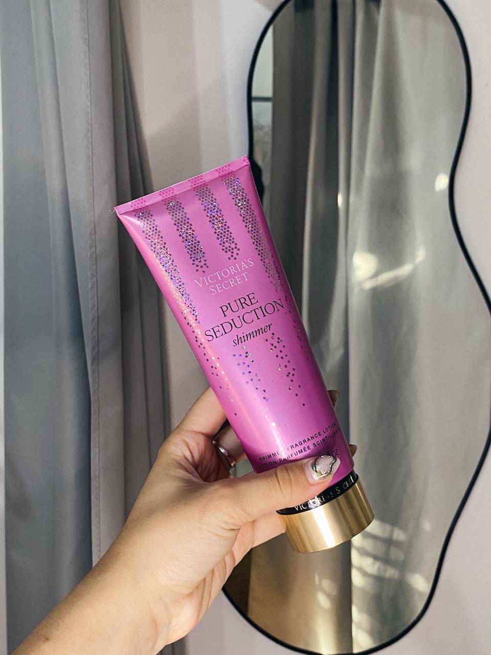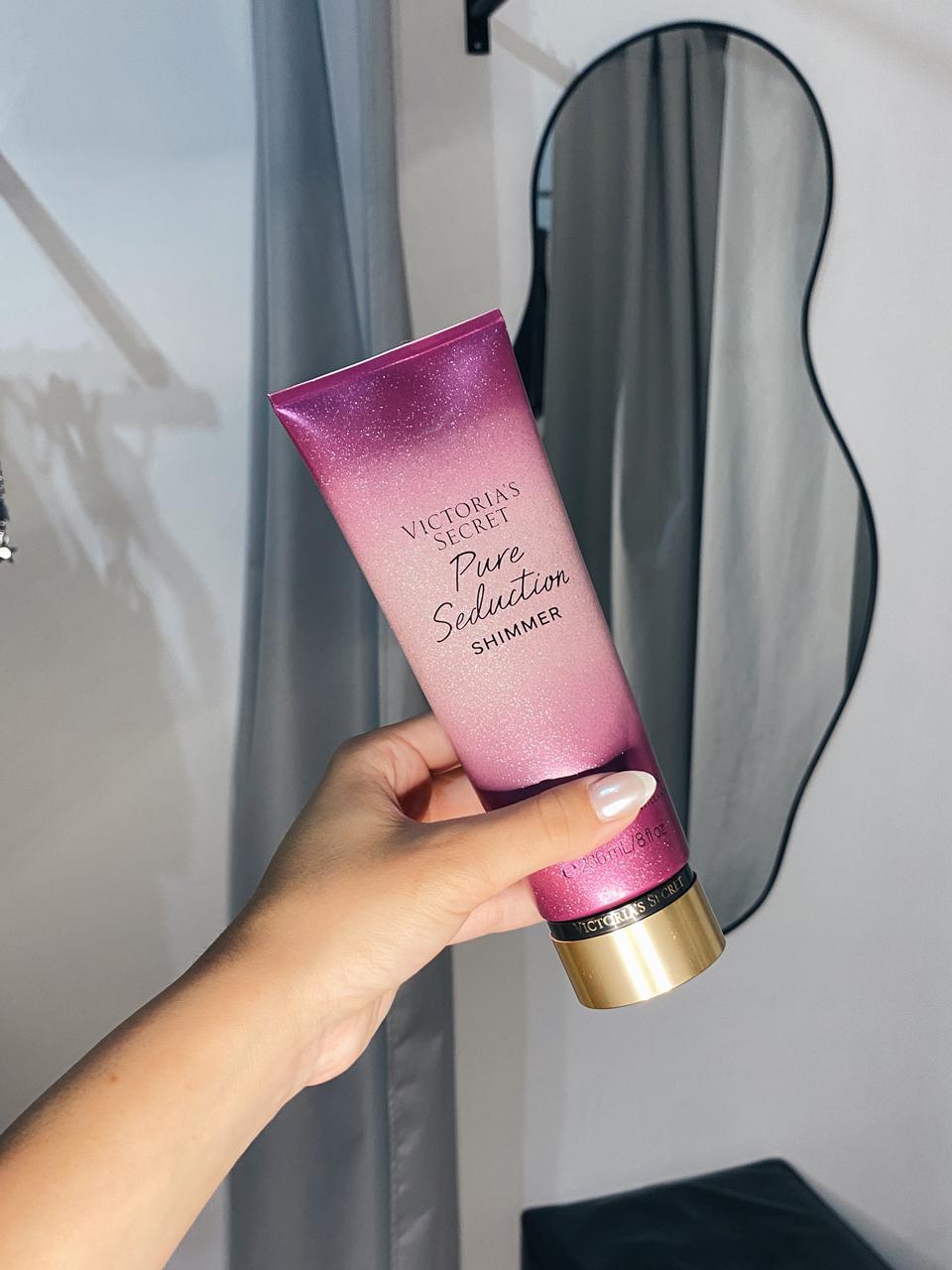Crema corporal Victoria’s Secret Pure Seduction Shimmer ✨💖 La versión luminosa de la fragancia icónica, con notas frutales y florales de ciruela jugosa y fresia. Su textura cremosa hidrata profundamente mientras el shimmer sutil deja la piel radiante y con un brillo delicado. Ideal para usar sola o combinar con el body splash, logrando una piel suave, perfumada y con glow en un solo paso.