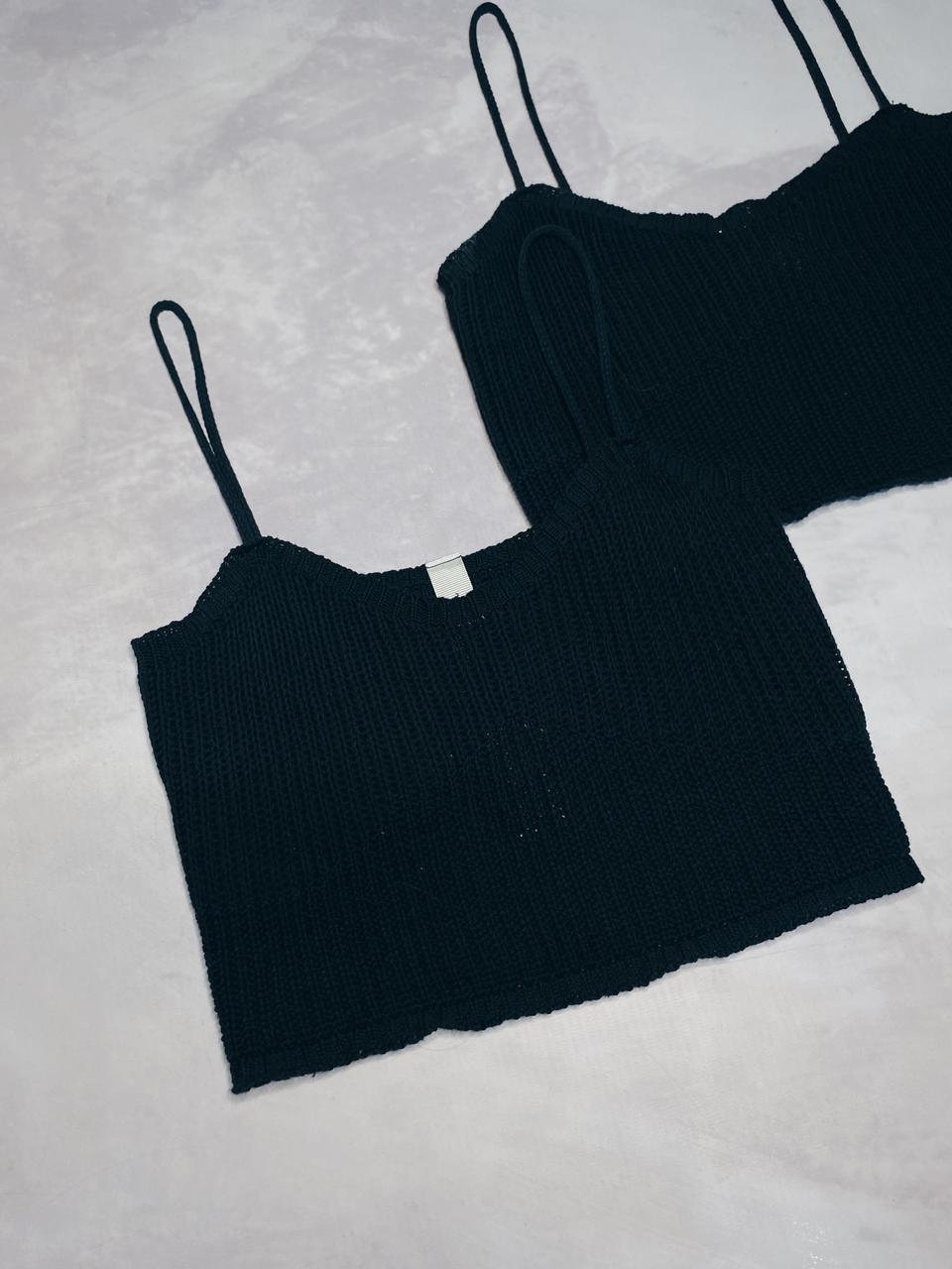 Tela: hilo, suave y con buena elasticidad para un calce al cuerpo. Corte: diseño con escote en corazón y breteles finos. Detalle: estilo playero y veraniego, ideal para looks frescos y femeninos. Talles disponibles: talle único. Colores disponibles: Negro. Ideal para combinar con el Palazzo Malaga